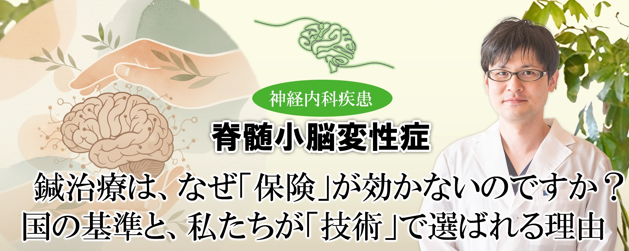 脊髄小脳変性症(SCD)と診断され、進行への不安を抱える中で、そのようにお悩みの方は少なくありません。「病院と同じように、鍼治療も保険で安く受けられたら…」そう思われるのは当然のことです。
